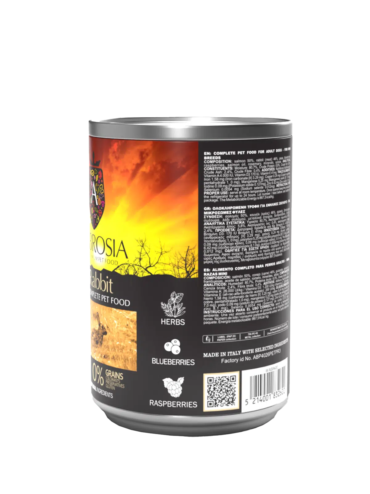 „AMBROSIA“ šlapio ėdalo serija, kaip ir visi „AMBROSIA“ produktai, yra sukurta Graikijoje ir gaminama bendradarbiaujant su patikimiausiomis naminių gyvūnėlių ėdalo gamyklomis Europoje, visada laikantis griežčiausių kūrėjų standartų ir kontroliuojant žaliavas.